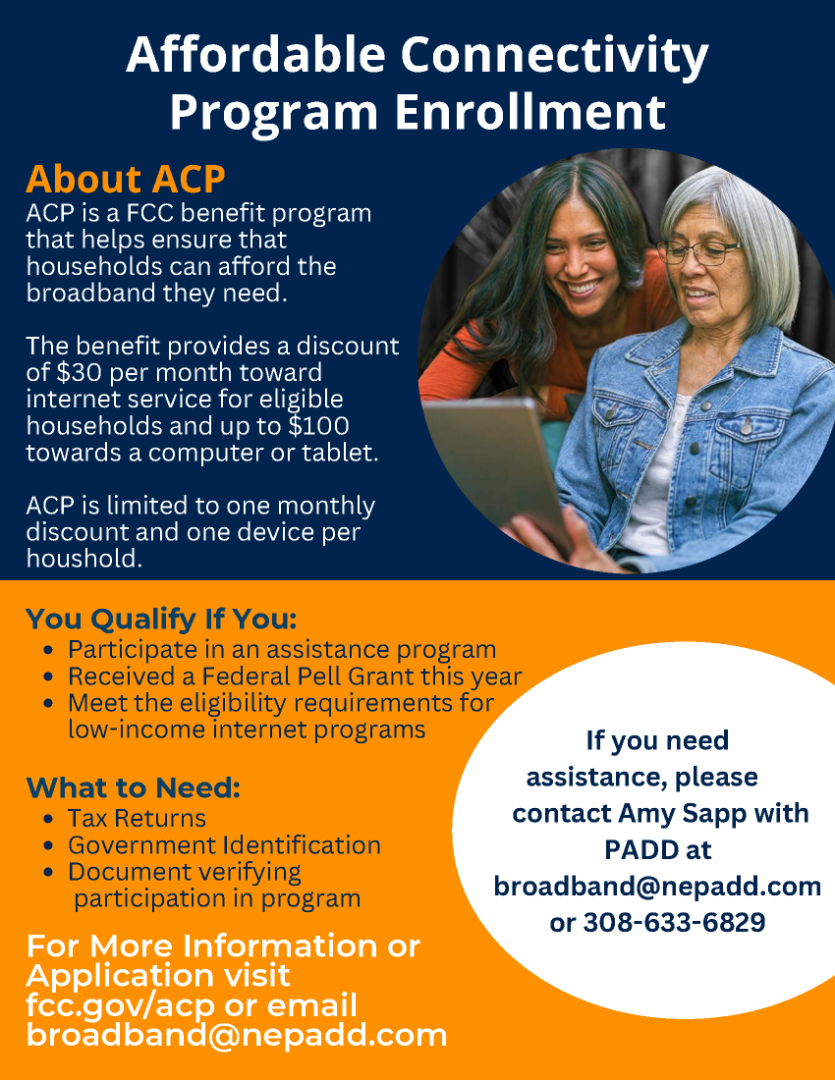 Attention Bayard Families! The ACP is a FCC benefit program that helps ensure households can afford the broadband they need. The benefit provides a discount of $30 per month toward internet service for eligible households and up to $100 towards a computer or tablet. The program is limited to one monthly discount and one device per household. For more information please contact the number listed below or go to https://www.fcc.gov/acp.